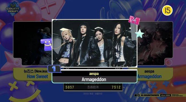 에스파는 지난 5월 23일과 30일, ‘Supernova’로 2주 연속 1위를 차지한 데 이어 지난 6일에는 ‘Armageddon’으로 1위를 차지하며 3주 연속 1위를 내달렸다. 뉴진스는 컴백 이후 ‘엠카운트다운’ 첫 1위 후보에 이름을 올리며 에스파와 정면 대결에 나섰다.