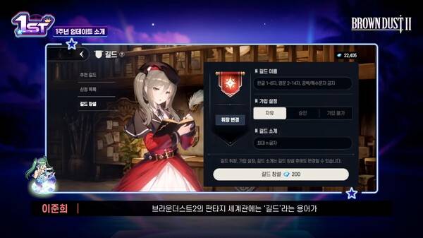 이전에는 클럽으로 소개된 콘텐츠다. 브라운더스트2 판타지 세계관에는 길드라는 용어가 더 어울린다고 판단해 명칭이 변경됐다.