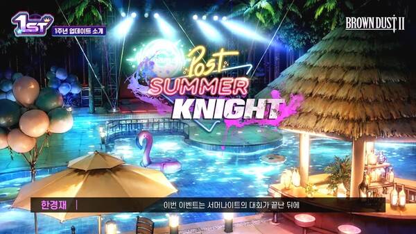 작년 여름 업데이트로 선보였던 이벤트 팩 이벤트 팩 '서머나이트'가 6월 20일부터 4주 동안 복각한다. 여름밤의 풀 파티를 배경으로 한 서머나이트는 유스티아, 세헤라자드, 라텔, 그레이를 비롯해 다양한 인물들이 신나게 풀 파티를 즐기는 모습을 만나볼 수 있다. 유스티아, 세헤라자드의 한정 수영복 풀 파티 코스튬도 1년 만에 복각된다.