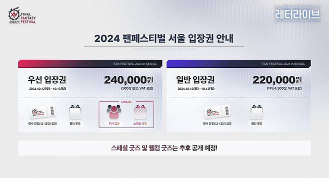 티켓은 양일권으로만 판매되며 가격은 우선 입장권 24만 원, 일반 입장권 22만 원이다. 최 PD는 "양일간 22만 원이 결코 적은 금액은 아니다. 2019년에는 양일권을 16만 원에 판매했는데 5년 사이 물가가 정말 많이 올랐다"며 가격 상승 이유를 설명했다.