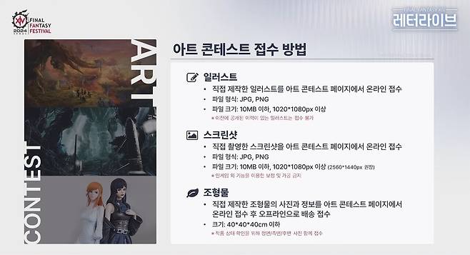 한편, 파이널판타지14 2024 팬페스티벌 서울은 10월 12~13일 양일간 개최되며 공식 페이지는 6월 14일 오후 12시부터 오픈된다. 해당 페이지에서는 유저들은 팬페스티벌 관련 각종 정보를 열람할 수 있다.