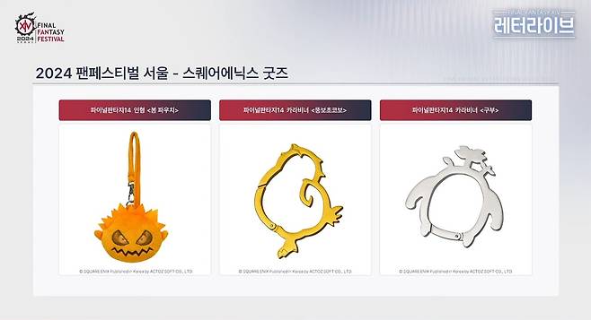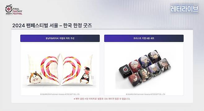 최 PD는 "스포일러 방지로 공개할 수 없지만 마우스 장패드도 판매한다. 팬들의 요청이 많아서 파이널판타지14 화투도 퀄리티를 높여서 판매할 예정이니 많은 기대 바란다"고 덧붙였다.