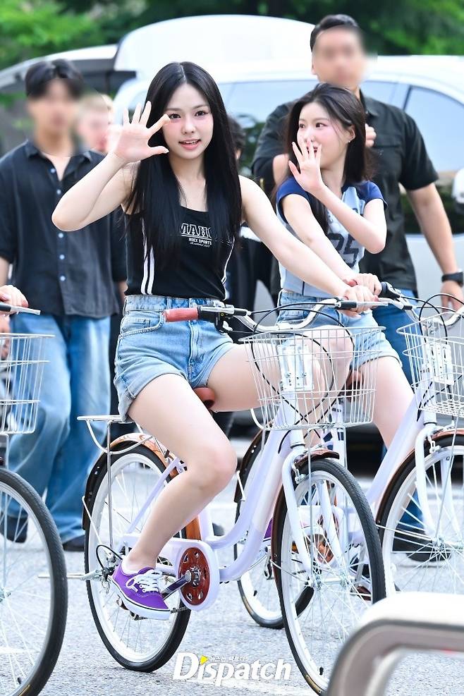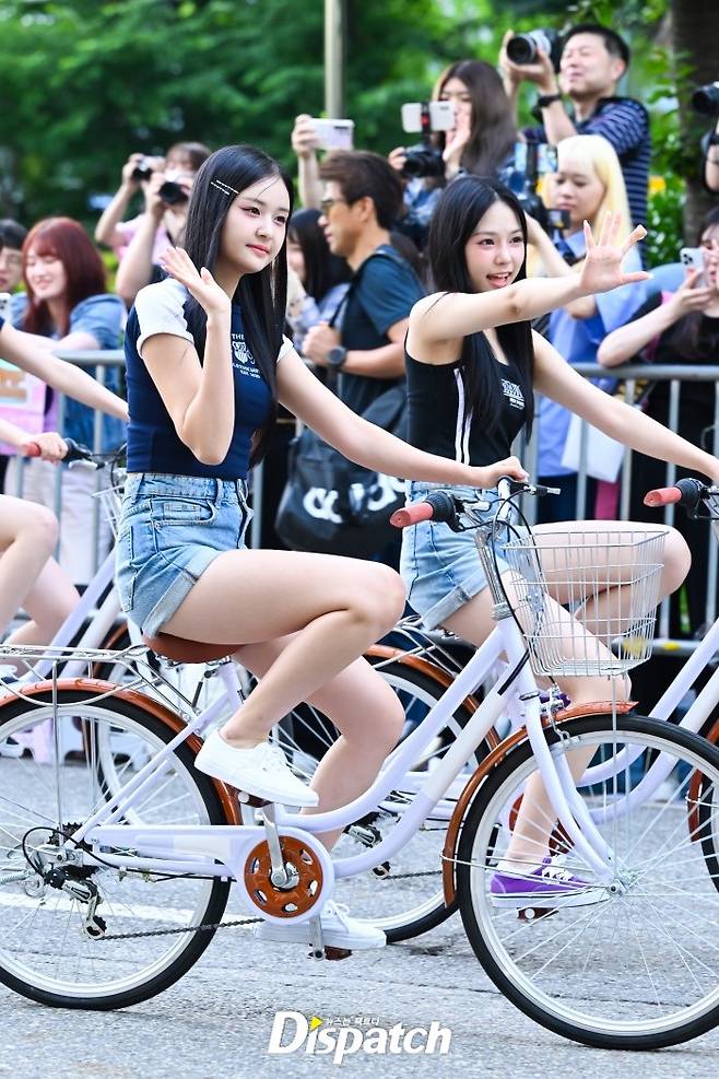 '캔디샵'은 자전거를 타고 출근길 이벤트를 펼쳤다. 청순한 매력이 돋보였다.