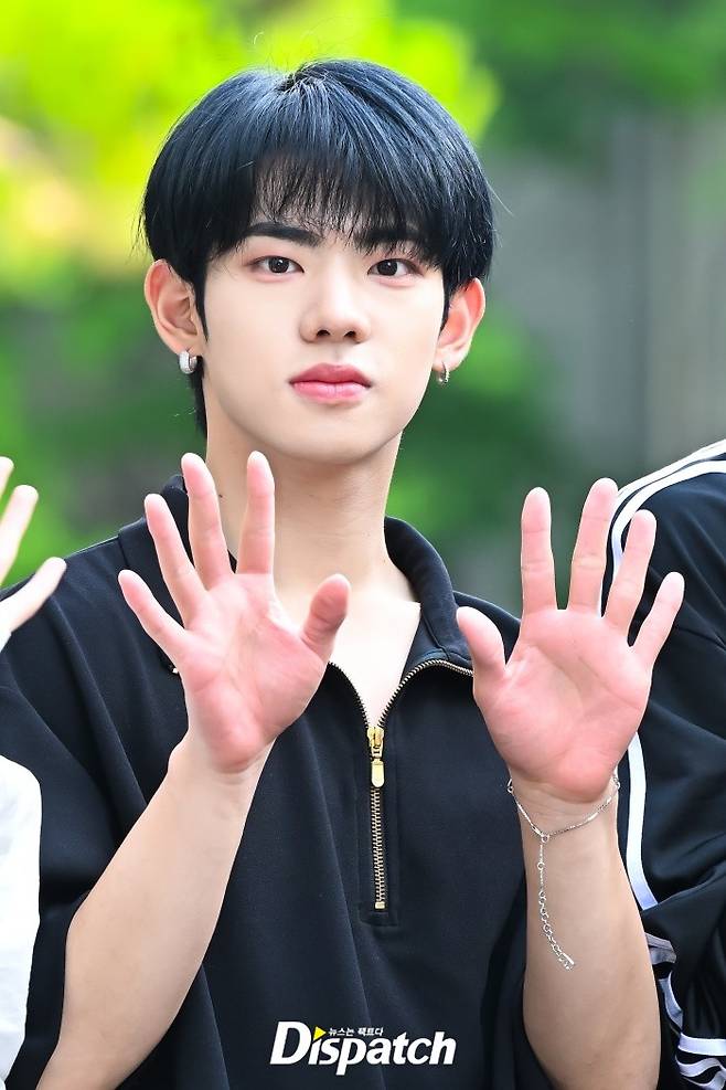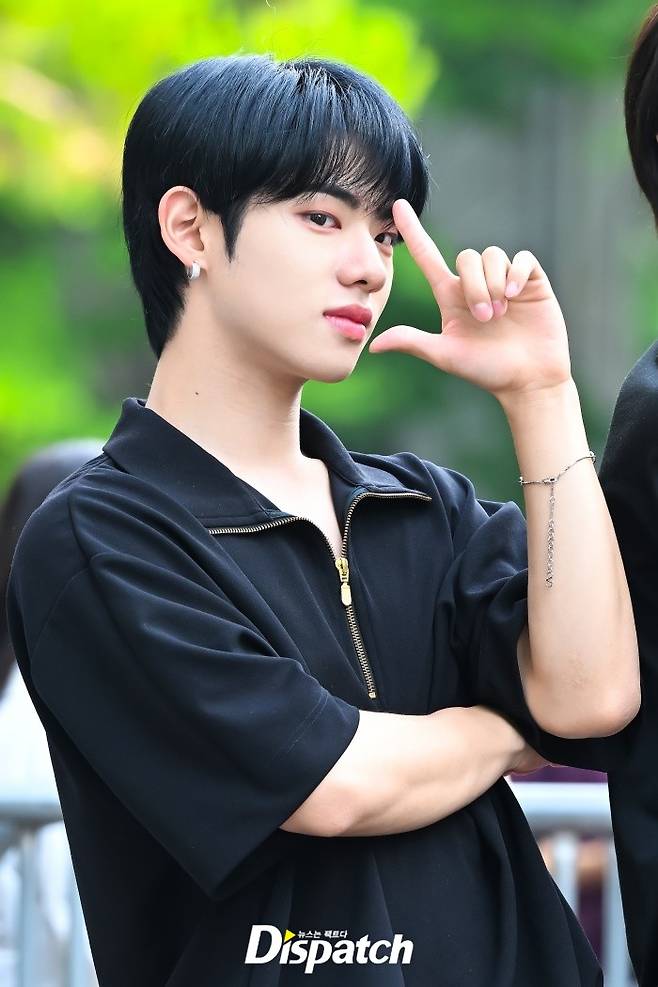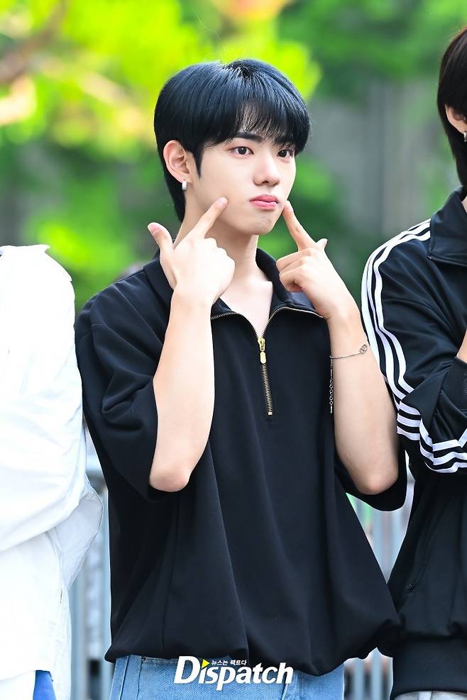 '판타지 보이즈' 강민서는 블랙 티셔츠와 데님 팬츠로 멋을 냈다. 잘생긴 비주얼이 돋보였다.