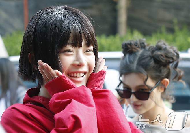 (서울=뉴스1) 권현진 기자 = 뉴진스의 하니가 음악방송 '뮤직뱅크'(뮤뱅)를 위해 14일 오전 서울 영등포구 KBS 신관 공개홀에 도착해 인사를 하고 있다. 2024.6.14/뉴스1