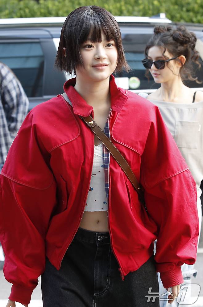 (서울=뉴스1) 권현진 기자 = 뉴진스의 하니가 음악방송 '뮤직뱅크'(뮤뱅)를 위해 14일 오전 서울 영등포구 KBS 신관 공개홀에 도착해 이동을 하고 있다. 2024.6.14/뉴스1