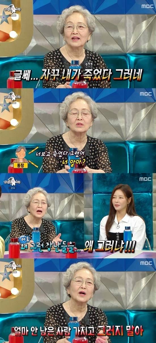 김영옥은 "나중엔 동창들까지 연락해서 물어보더라. 왜 그런 장난을 치나. 내가 살날이 많은 사람이면 웃고 마는데 (살날이) 얼마 안 남은 사람 가지고 그러지 말아"라며 나이로 인해 생성된 가짜뉴스를 언급, 일침을 날렸다.