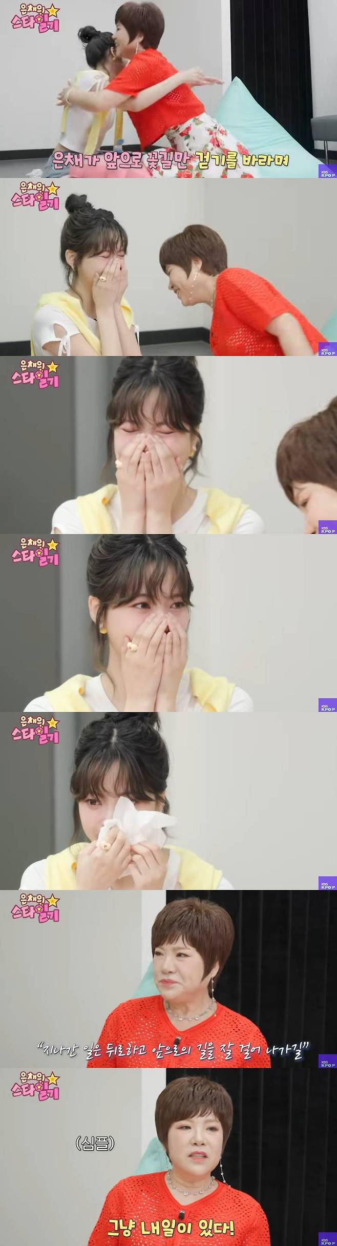 그룹 르세라핌 홍은채가 김연자의 조언과 포옹에 눈물을 흘렸다.