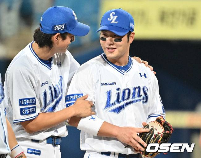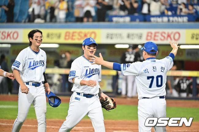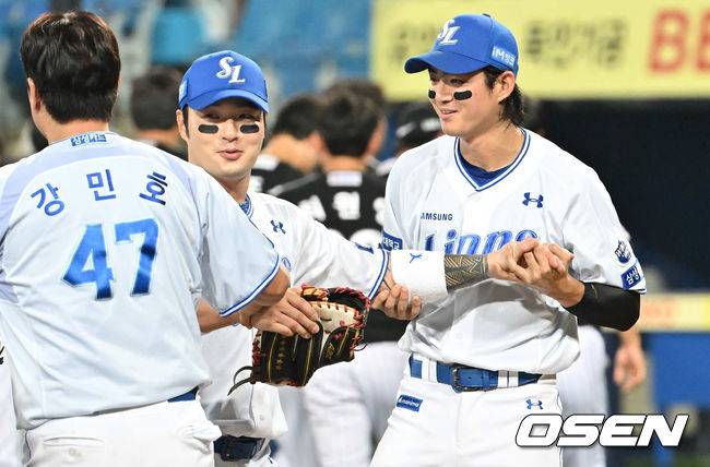 승리의 기쁨을 나누며 하이파이브를 하던 박병호를 주장 구자욱이 잡아끌었다.