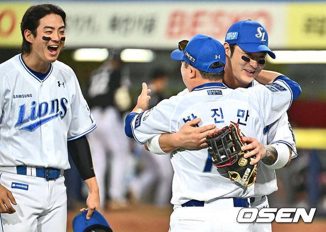 구자욱은 박진만 감독과 포옹하는 박병호를 보며 함께 기뻐하고 축하했다.