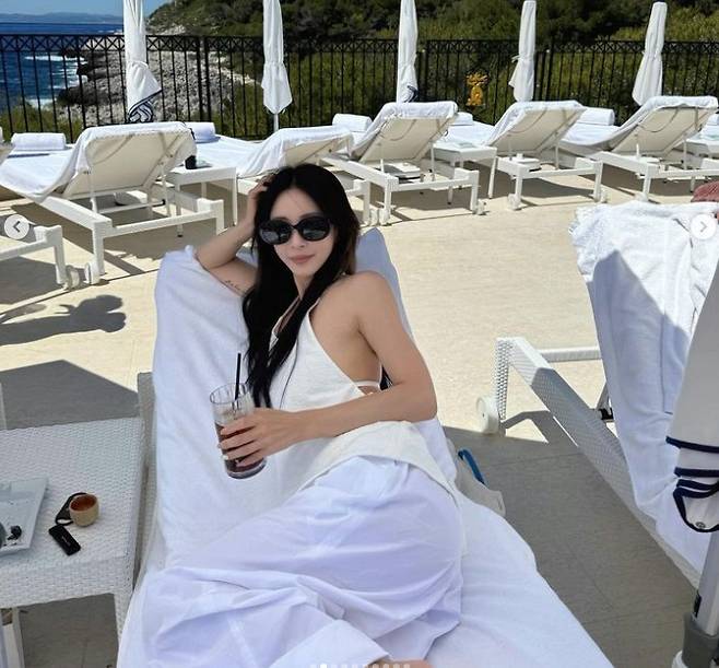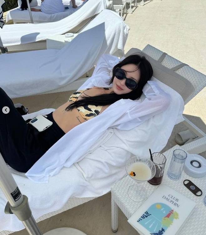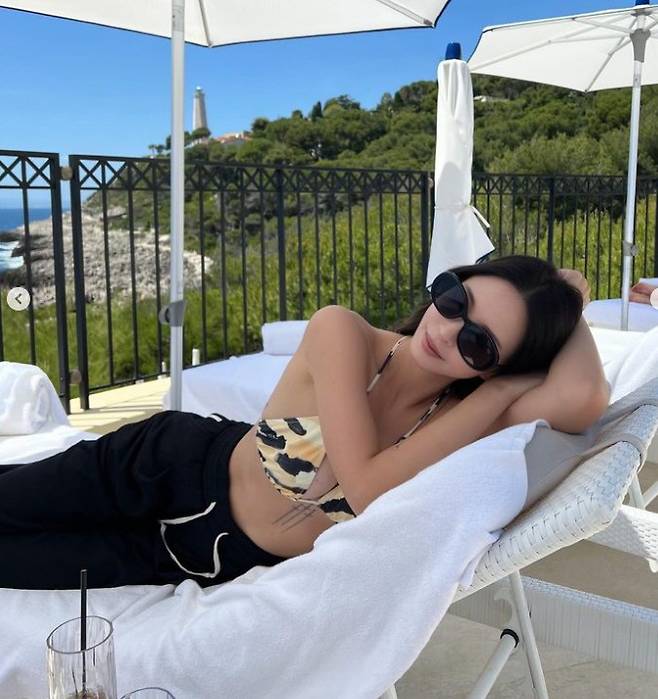 반면 선베드에 누운 한예슬은 검정 바지에 비키니로 섹시한 반전매력을 더해 눈길을 끌었다.
