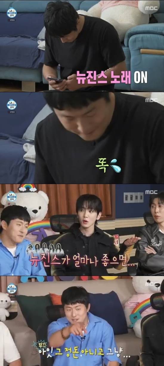 이날 기안84는 빨래 정리를 하던 중 휴대폰으로 뉴진스의 노래를 틀면서 순간적으로 침을 흘렸다.