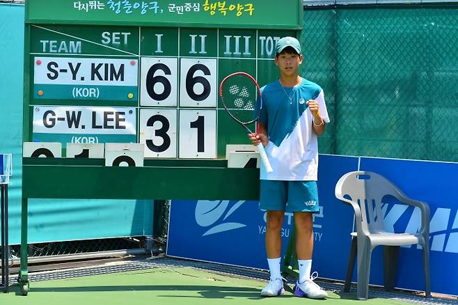 14일, 강원도 양구테니스파크에서 열린 ATF(아시아테니스연맹) 양구국제주니어 14U, 2차 대회 남자단식 결승전에서 1번시드 김시윤은 1시간 43분만에 2번시드 이관우(양구중)를 6-3 6-1로 제압하고 우승을 차지했다.
