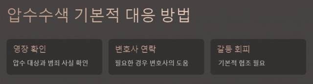 수사기관의 초기 수사에서 압수수색만큼 중요한 것이 없습니다. 압수수색을 통해 애매하던 사실관계가 선명해질 수도 있고, 그동안 알지 못했던 사실이 드러날 수도 있습니다. 수사기관이 문 앞에 와서 초인종을 눌렀다는 것은 이미 ‘링’ 위에 오르기 직전, 준비운동이 끝났다는 것이지요.