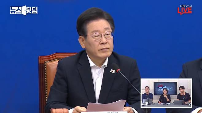 ▶윤지나> "권력 줬더니 보복이나 하고" 말을 꾹꾹 누르고. 계속 감정을 추스리면서 띄엄띄엄 말하네요. 거의 매일 이렇게 지도부 회의를 보는 기자들이 보기에는 오늘 이 대표가 되게 인상적으로 보였대요. 오늘 이재명 대표 기분 나쁘다, 이렇게.