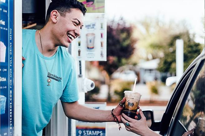 1994년 문을 연 더치브로스의 첫 매장은 드라이브스루 형태다. 트래비스 CEO는 2021년 뉴욕의 투자서비스 기업과의 인터뷰에서 “그때는 잘 몰랐지만 드라이브스루 매장을 선택한 것은 우리가 공략할 틈새이자 운명이었다”며 “놀고 싶은 사람들은 데크에서 쉬어가고 바쁜 사람들은 드라이브스루를 이용하면 된다”고 했다.