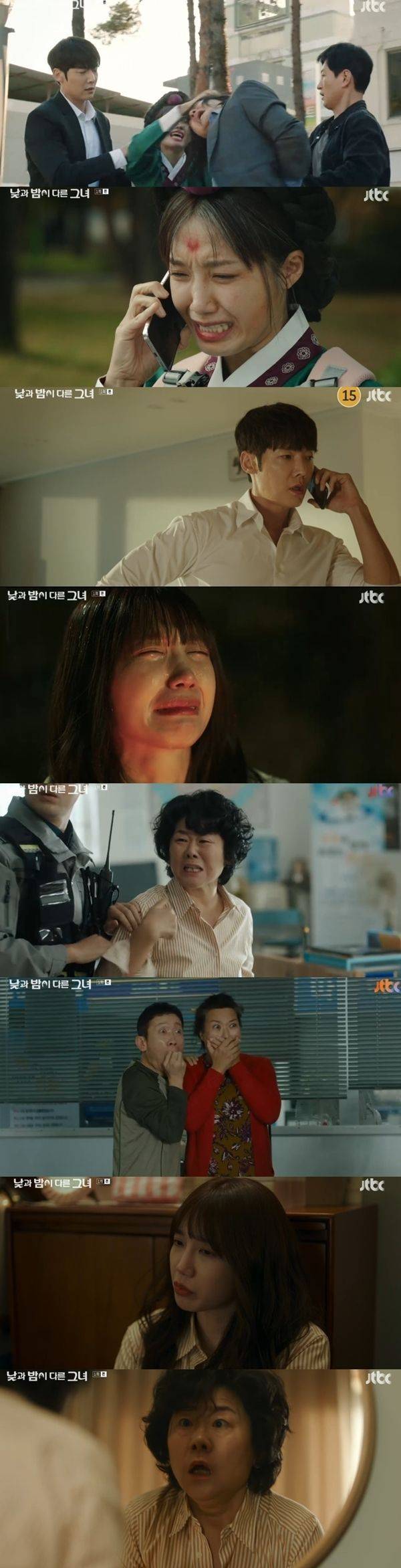15일 첫 방송된 JTBC 새 토일드라마 '낮과 밤이 다른 그녀'(극본 박지하·연출 이형민)에서는 이미진(정은지)이 50대 아줌마 임순(이정은)이 됐다.