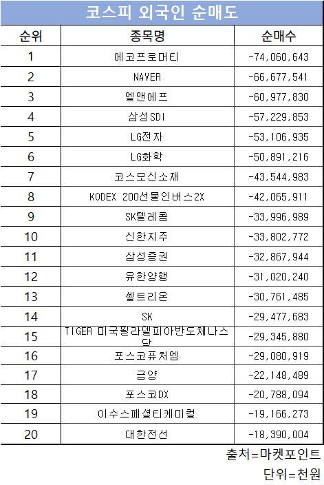 코스피 주간 외국인 순매도 1위 ‘에코프로머티’