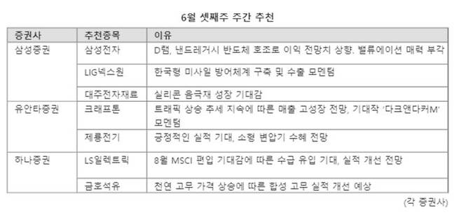 하나증권은 LS일렉트릭을 추천했다. 8월 모건스탠리캐피털인터내셔널(MSCI) 편입 기대감에 따른 긍정적인 수급 유입이 기대되며, 변압기 쇼티지 지속, 부산사업장 생산공장 증설로 실적 개선이 전망된다는 분석이다.