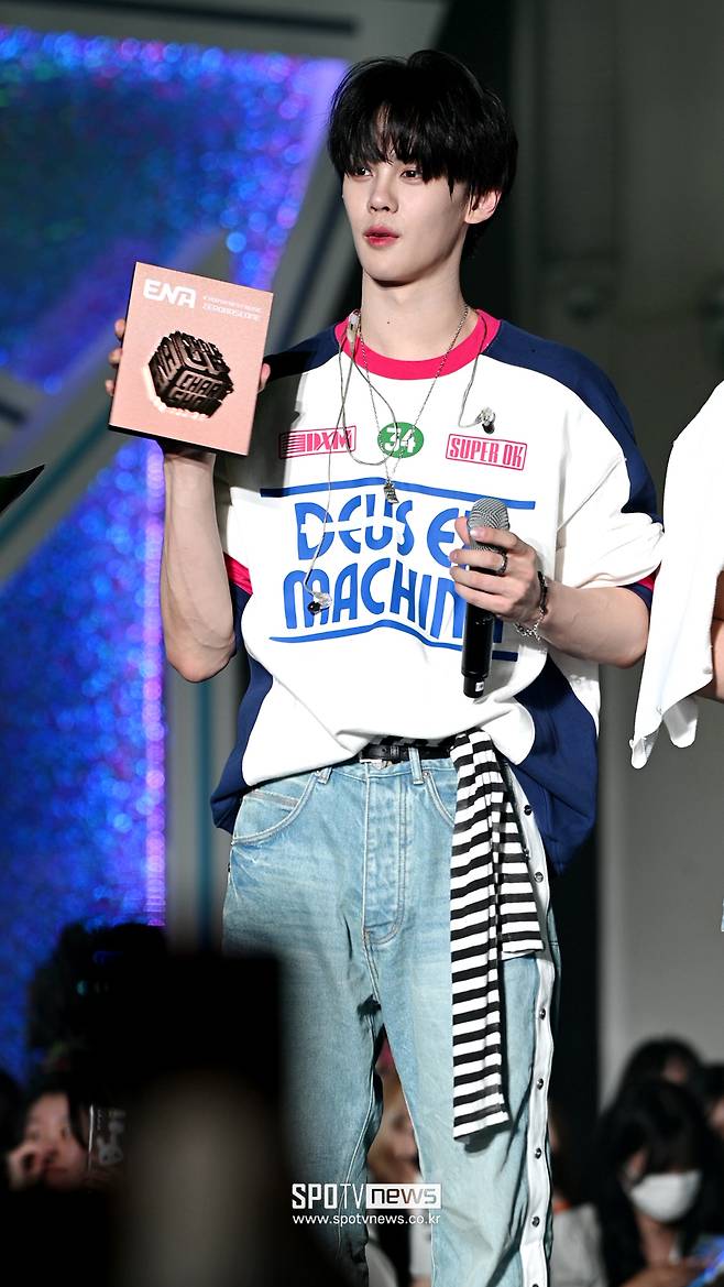 [스포티비뉴스=박성기 기자] 그룹 제로베이스원 김규빈이 14일 오후 6시 30분 첫 방송된 ENA 월간 음악 예능 'ENA 케이팝업 차트쇼'에서 'ENA 케이팝업 베스트 뮤직'을 수상, 트로피를 들고 앵콜 무대를 펼치고 있다.