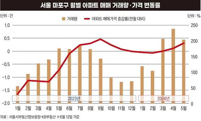그 덕에 마포는 올해 서울 집값 상승을 견인하고 있다. KB부동산 월간시계열 자료에 따르면 서울에서 지난해 말 대비 올해 5월 가격 상승률이 가장 높은 자치구가 마포였다. 지금 같은 부동산 하락기는 시세에 거품이 빠지며 지역별, 단지별 옥석을 가릴 수 있는 시기다. 투자수요가 밀물처럼 사라진 자리를 실거주 수요가 받쳐줘야 하기 때문이다. 그만큼 마포 아파트에 살고자 하는 실거주 대기수요가 많다는 뜻이다.