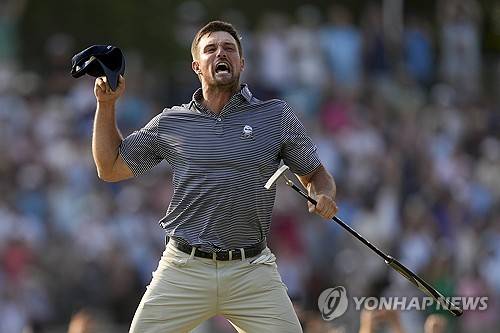 Bryson DeChambeau celebrates after winning the U.S. Open golf tournament Sunday, June 16, 2024, in Pinehurst, N.C. (AP Photo/Matt York)