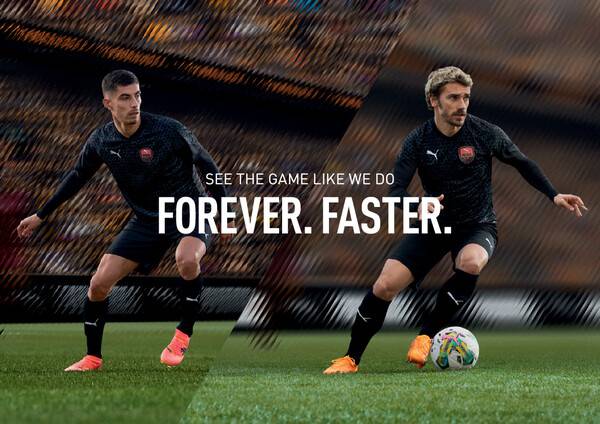 ‘FOREVER. FASTER.‘를 만트라 삼는 푸마는 가장 빠른 선수들과 함께 스포츠 발전을 이끌어왔다. 브랜드 DNA에 깊이 녹아든 ‘빠름’이라는 키워드는 인간의 한계를 뛰어넘는 초월적인 힘을 이끌어 내는 기폭제로, 축구 역사 속에서 영원히 기억될 무수히 많은 순간들을 만들어왔다. 펠레(브라질)와 디에고 마라도나(아르헨티나)로 대표되는 세계적인 축구스타, 홍명보와 안정환으로 대표되는 한국축구 레전드들이 푸마를 신고 피치를 누볐다.