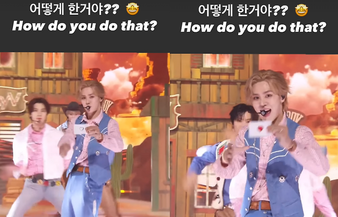 영상에는 음악 방송에 출연한 WayV의 'Give Me That' 무대 중 쿤의 마술 장면이 담겨 있다.