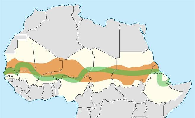| ▲ 아프리카 녹색 만리장성. 갈색은 사헬지역, 하얀색은 참가국이다. |