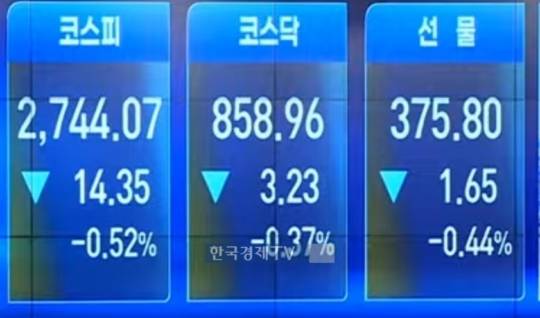 17일 코스피는 전 거래일보다 14.32포인트, 0.52% 내린2,744.10에 거래를 마감했다.