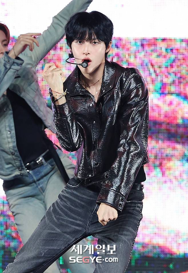 그룹 라이즈 원빈이 17일 오후 서울 용산구 한남동 블루스퀘어에서 열린 첫 미니 앨범 '라이징'(RIIZING)의 쇼케이스에 참석해 열띤 공연을 펼치고 있다.
