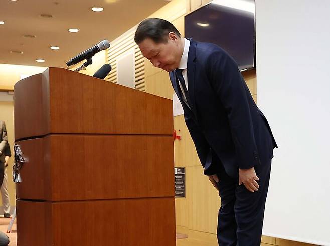 - 90도 숙인 최태원 "재산분할서 명백한 오류 발견…상고 결심"