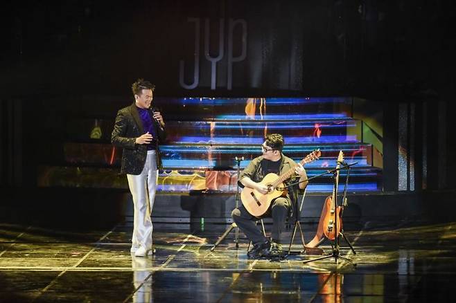 둘째 날에는 박진영의 오랜 음악 동반자 방시혁 하이브 의장이 깜짝 무대에 올라 화제를 낳았다. 그는 기타와 건반으로 박진영이 작곡한 ‘난 여자가 있는데’와 ‘거짓말’ 등의 히트곡들을 직접 연주했다.