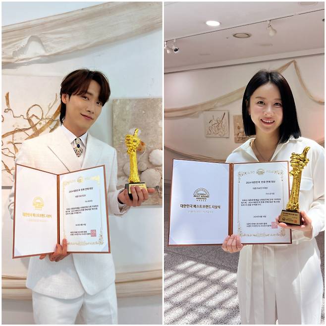 이번에 은가은과 최우진이 수상한 2024 대한민국 베스트브랜드 어워드’는 대한민국 베스트브랜드협회와 세종대왕 국민위원회가 진행. 소비자들로부터 사랑과 신뢰를 받는 스타, 브랜드, 인플루언서 등이 한자리에 모이는 대규모 시상식이다.