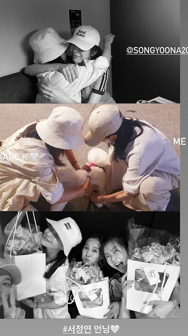 사진에는 송윤아, 김희선, 송혜교, 서정연이 한자리에 모여 오붓한 시간을 보내는 모습이 담겨 있다. 평소 돈독한 우정을 자랑하는 이들은 서로를 꼭 끌어안으며 넘치는 애정을 드러내 훈훈함을 자아낸다.