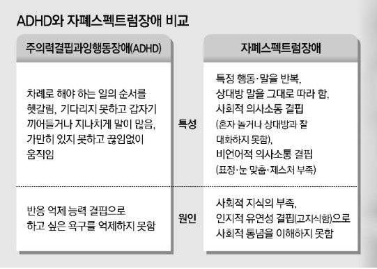 ㅡADHD와 자폐스펙트럼장애가 혼동되기 쉽다는 뜻인데 어떤 차이가 있나