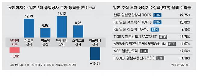 일본 주식에 투자하는 상장지수상품(ETP) 중에서도 일본 종합상사에 투자하는 상품이 눈에 띄는 수익률을 거뒀다.