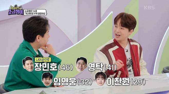 이찬원은 임영웅, 장민호, 영탁과 함께했던 술자리 비하인드를 전했다. 넷 중 가장 연장자는 장민호이고, 그 다음으로 나이 순으로는 영탁, 임영웅, 이찬원이다. MC들은 통상 나이 순으로는 장민호가 내지 않나라고 추측했다.
