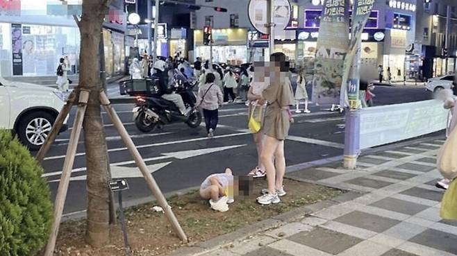 제주 길거리에 대변보는 아이…외국인 관광객 행위 논란