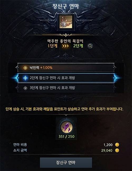 티어4 장신구는 새롭게 도입될 '장신구 연마'로 새로운 효과를 부여할 수도 있다. 장신구는 최대 3단계까지 연마할 수 있으며 연마 시 다양한 효과 중 하나가 일정 확률로 부여된다.