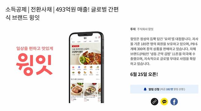 외부 감사인으로부터 계속기업 불확실성을 지적받은 HMR(가정 간편식) 전문 커머스 플랫폼 윙잇이 40억원 규모의 자금조달을 추진한다.