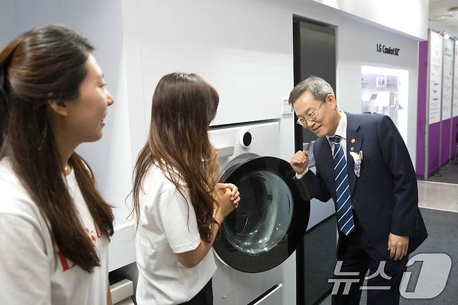 (서울=뉴스1) = 이종호 과학기술정보통신부 장관이 19일 오후 서울 마포구 에스플렉스센터에서 열린 '제37회 정보문화의 달 기념식'에서 LG전자 부스를 둘러보고 있다. (과학기술정보통신부 제공) 2024.6.19/뉴스1