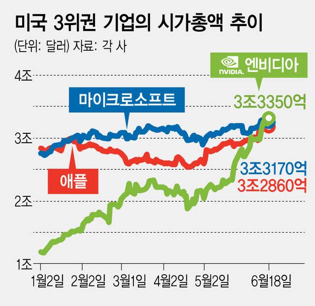 MS·애플 제친 엔비디아 시총 1위…‘인공지능 3파전’ 최후의 승자는?