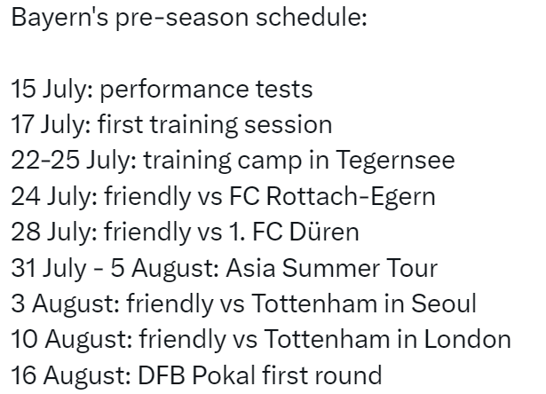 뮌헨 소식을 다루는 바이에른&저머니에 따르면 뮌헨 선수단은 다음 달 15일 처음 소집돼 퍼포먼스 테스트를 받는다. 이어 17일부터 본격적으로 첫 번째 훈련을 시작한다.