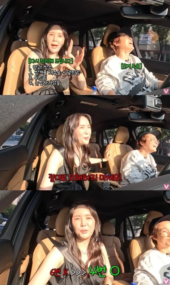 장영란의 눈을 본 송은이는 "영란아, 나는 너 잘 한 거 같아. 나는 그걸 이해하거든"이라면서 "나 아는 동생 중에 이마로 눈 뜨는 애가 있다"고 말했다.