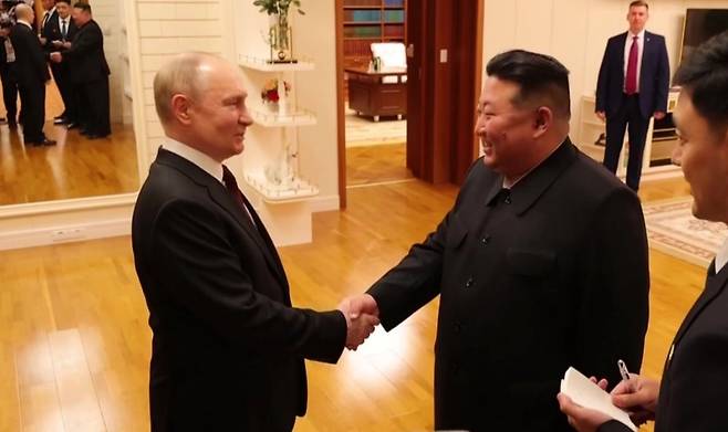 북-러가 ‘과학 분야 협력 협정’을 체결한 것과 관련해선 러시아가 군사정찰위성 등 기술을 북한에 이전하려는 것이란 관측이 나온다. 특히 푸틴 대통령의 이번 방북 수행단에는 이례적으로 ‘러시아판 미국항공우주국(NASA)’인 연방우주공사 사장까지 동행해 이 관측에 무게를 더하고 있다.