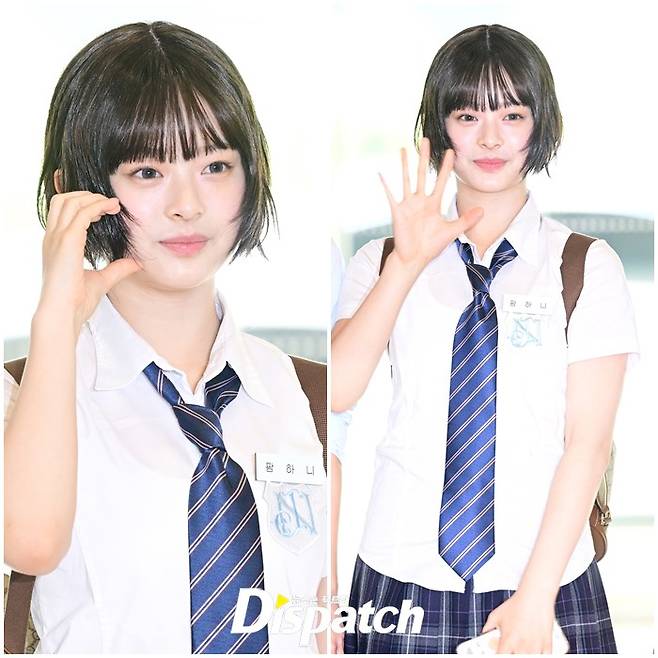 하니는 깜찍한 비주얼로 눈길을 끌었다. 인형같은 똑단발 헤어와 러블리한 포즈로 인상적이였다.