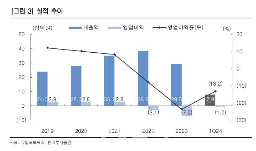 NH투자증권은 유일로보틱스(388720)가 올해 업황 부진 속에도 흑자로 전환할 것으로 기대했다.