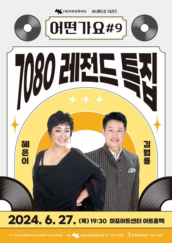 가요계 대표 레전드 가수로 자리매김한 혜은이X김범룡 콘서트는 마포문화재단이 여름 밤 7080 추억 속으로 안내할 '어떤가요-7080 레전드 특집' 시리즈 9번째 무대다. 매 공연마다 예매율 70% 이상으로 중장년층 관객들의 관심이 뜨겁다.