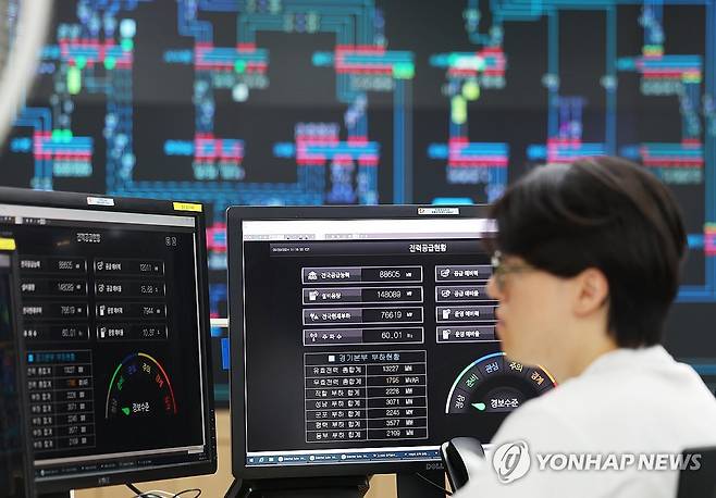 (수원=연합뉴스) 홍기원 기자 = 폭염이 이어지며 전력 수요가 증가하고 있는 20일 오전 경기도 수원시 영통구 한국전력공사 경기본부 전력관리처 계통운영센터에서 관계자들이 전력수급상황을 주시하고 있다.